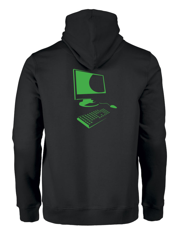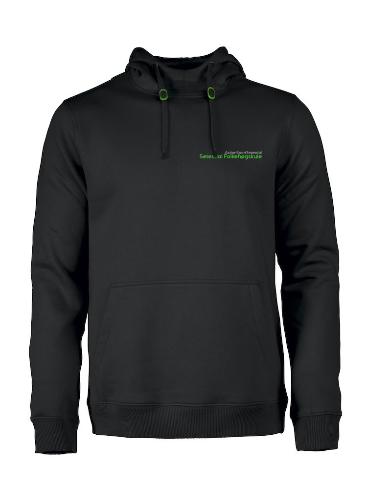 Sweatshirt med hette og halvmåne i nakken, 2×2 mansjett i arm og nederkant.
